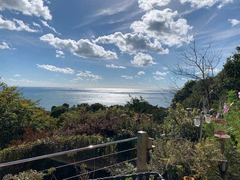 From the pretty, wild flower garden below the chalet, 19 Evening Star has a fantastic decking area to sit on which continues the seaside feeling with its attractive stainless-steel handrail and wires whilst you enjoy the fabulous uninterrupted views of the English Channel. We also provide our guests with reclining outdoor furniture with cushions for you to sit back and enjoy the views.